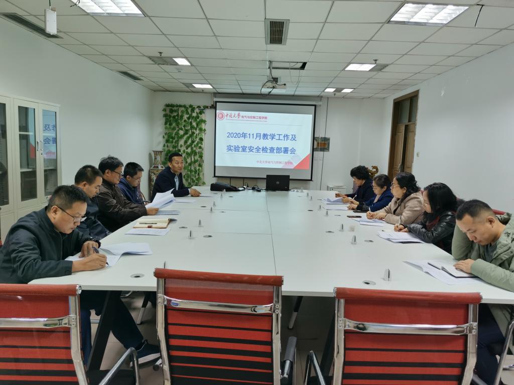 在11号楼619召开11月教学工作及实验室安全检查部署会,会议由教学院长李晓主持,学院党总支书记陈晔、各系主任、实验室负责人、科研科、综合科、教学科成员出席会议。