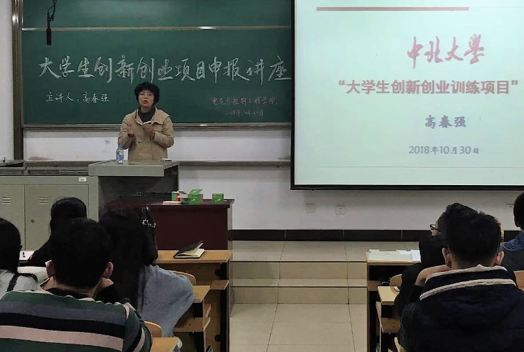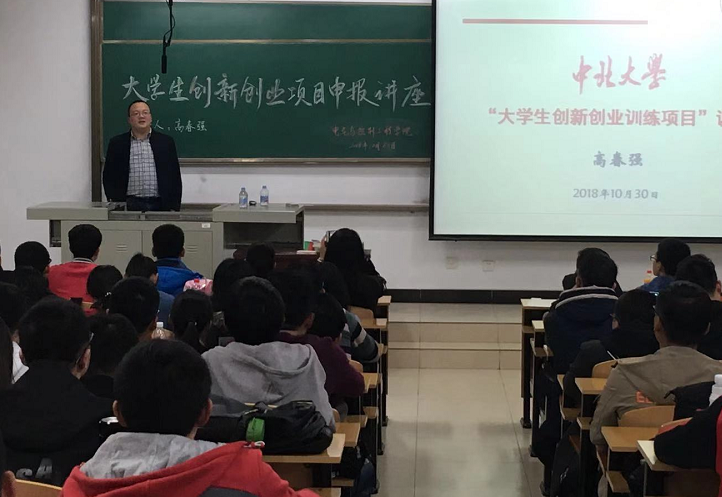 结合本科教育思想大讨论的实施方案,邀请教务处高春强副处长举行了18年大学生创新创业项目申报专题讲座。讲座由学院副院长李晓主持,学院教师姚舜才、李新娥、赵俊梅、李郁峰、尤文斌、陈昌鑫等大创项目指导教师参加了讲座,各班班长、科技委员、科协成员、创新实验室负责人等160余名同学聆听了此次讲座。