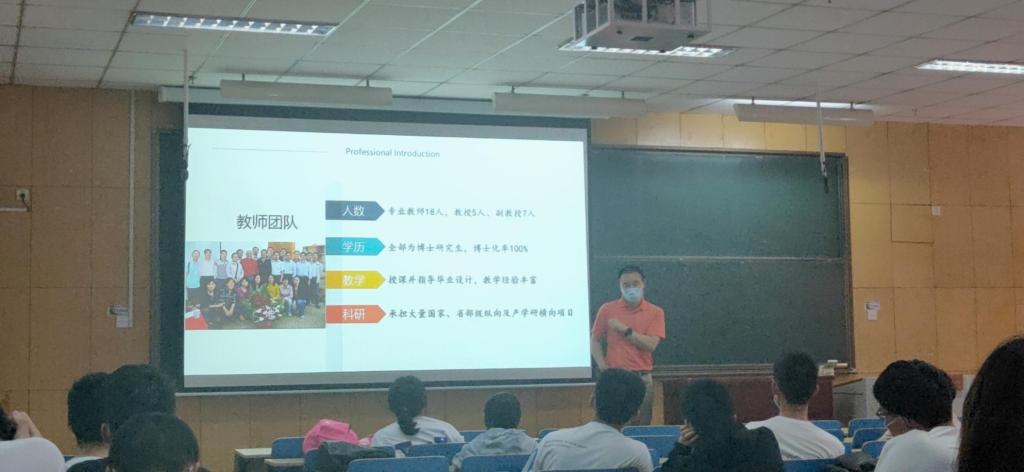 两位老师主要从专业简介、专业学习内容、就业方向和前景、考研方向、教研室介绍、专业特色等方面进行讲解。老师们用图片展示的方式向同学们介绍了各个专业在生产生活中的应用,使同学们对将来就业范围及可选工作有所了解。另外,为了增强同学们学习的信心,老师们展示了近三年自拍外流