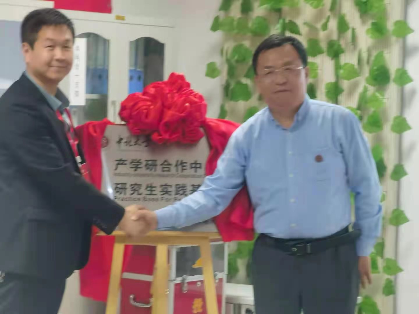会议最后公司代表山西维韬科技有限公司董事长张维斌和学院代表任一峰教授共同为基地揭牌,双方合影留念。