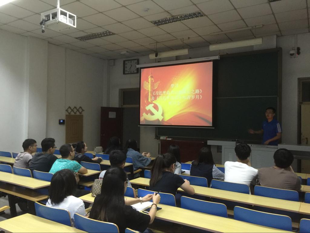 研究生第一、第二党支部于9月12日晚七点在11210H教室开展了新学期党支部“开学第一课”活动,本次学习旨在学习贯彻习近平总书记视察山西讲话的精神,学习《习近平总书记的成长之路》及《习近平的七年知青岁月》,让每名党员深入领会精神,坚定理想信念。