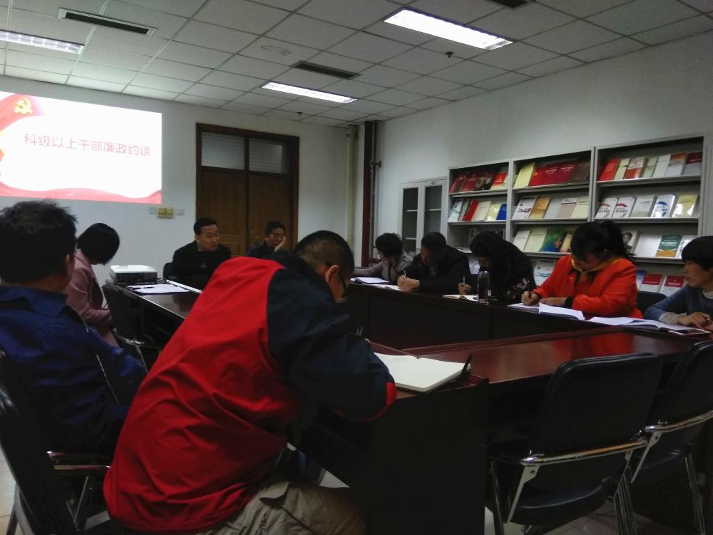 党委在主楼621室开展科级以上干部廉政约谈工作。全体院领导、科级干部均出席本次会议。