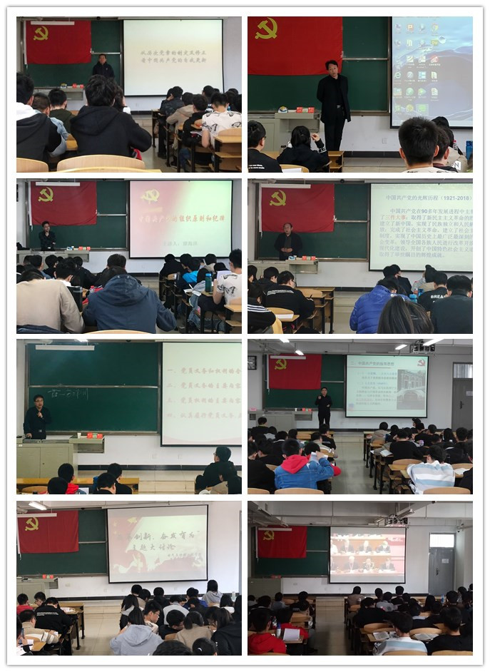 党委书记陈晔、大数据学院党委书记郭书杰、化学工程与技术学院党委书记廖海洪、软件学院党委书记段义权、能源动力工程学院党委书记李运芝、学生工作部(处)部(处)长尹建平六位教师分别进行了《历次党章的制定及修正看中国共产党的自我更新》、《党的性质》、《党的组织原则与纪律》、《党的光辉历程》、《党员的权利和义务》、《党的指导思想》专题授课。同时,组织学员认真观看了《习近平总书记在庆祝改革开放40周年大会上的讲话》视频,学习改革开放以来中国的发展和所取得的成就。