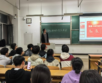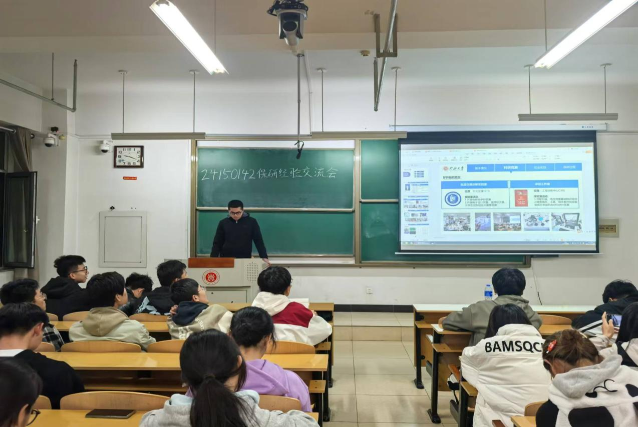 在15208H教室举办了第二期榜样引领学习经验交流会,本次讲座由保研学生杨弼凯、董毫羡、黄雨彬面向24150142进行讲解。