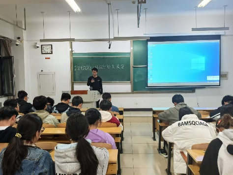 本次交流会首先由杨弼凯进行分享,他从自身经历出发,就保研、学习绩点、学习方法、时间管理等方面与同学们进行交流,他建议同学们积极参加学校各项活动,在保证主课学习成绩的同时多多参加各项比赛,推荐学生加入学生会,实验室等组织。
