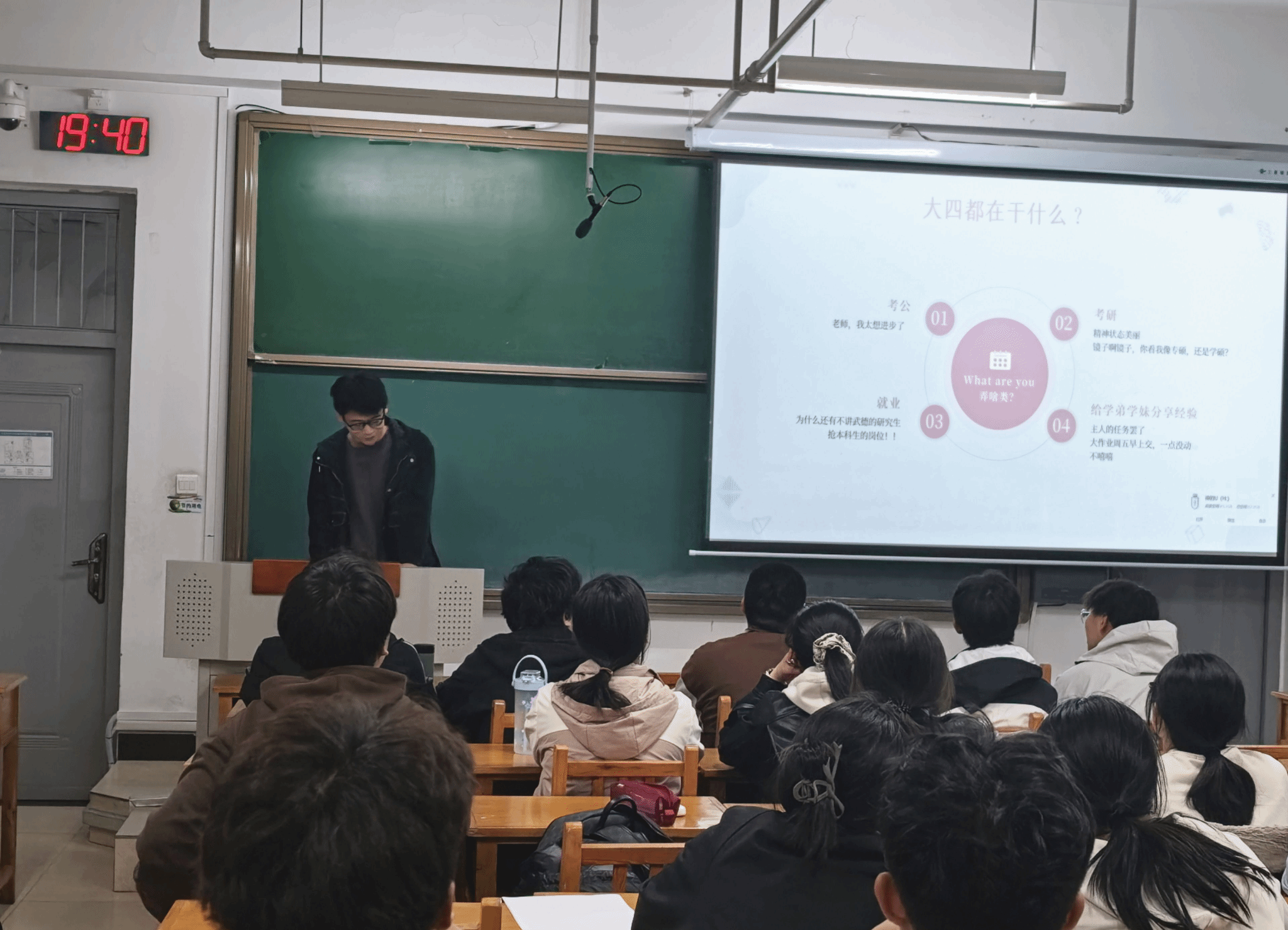 “一苇以航”辅导员工作室在15305Z教室成功开展第141期论文学堂。本次活动邀请保研学生李政达为25150141班同学传授经验、指点迷津。