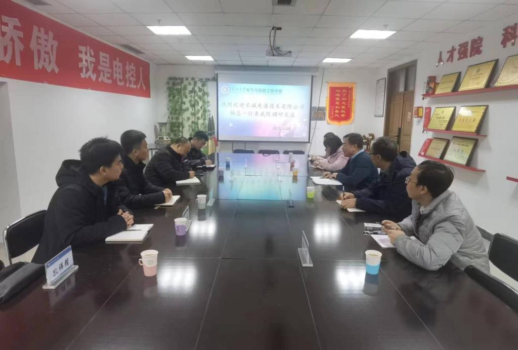 任一峰对杨韶慧一行来访表示欢迎,并从学院办学历史和特色、人才培养、学科建设、科研成果等方面介绍了学院有关情况。他指出,长城电源拥有32年开关电源研发和制造经验,有着良好的行业基础和产业优势。他希望以此次调研交流为契机,立足双方资源和技术优势,围绕解决产业链中的关键共性技术问题,找准校企合作契合点,提升合作层次,拓宽合作空间,助推双方高质量发展。