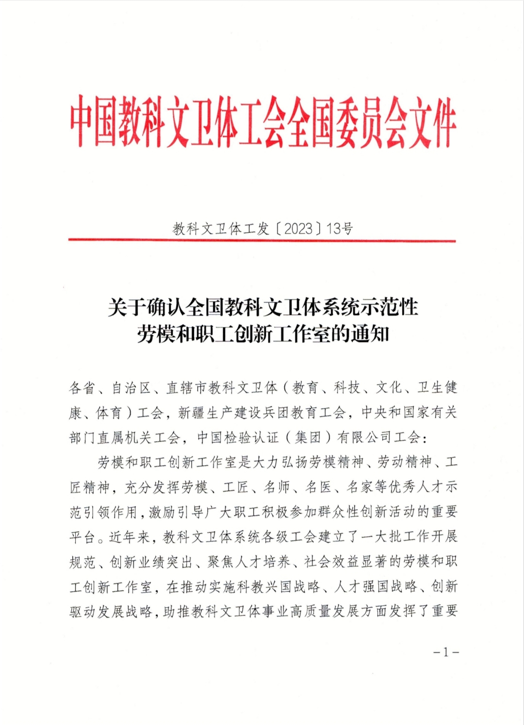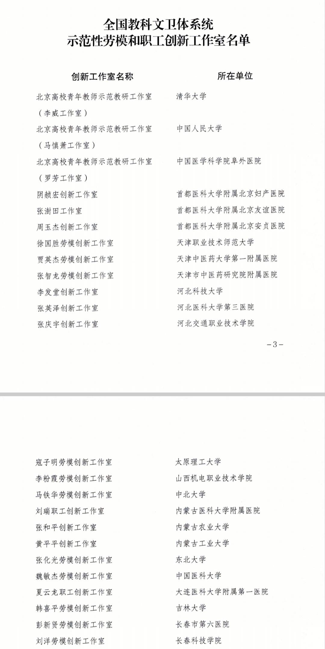 马铁华劳模创新工作室被确立为全国教科文卫体系统示范性劳模和职工创新工作室。此次全委共选树了98个创新工作室,我省三所高校的,三个劳模创新工作室入选。