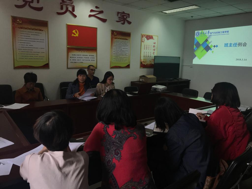 在11号楼621会议室召开了2017-2018学年第二学期第一次班主任例会,本次会议由院党委副书记杜苇主持,学院全体辅导员、班主任参加了会议。