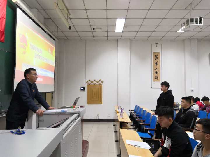 2018年10月17日下午,在班主任刘玉巍老师的指导下,18150441团支部邀请到了自拍外流 校团委书记李俊华老师,与18150441团支部交流分享习近平总书记“7.2”重要讲话精神与团的十八大精神。院团委书记郝国臣老师、学院的部分团学骨干以及441班的全体同学参与此次团课。