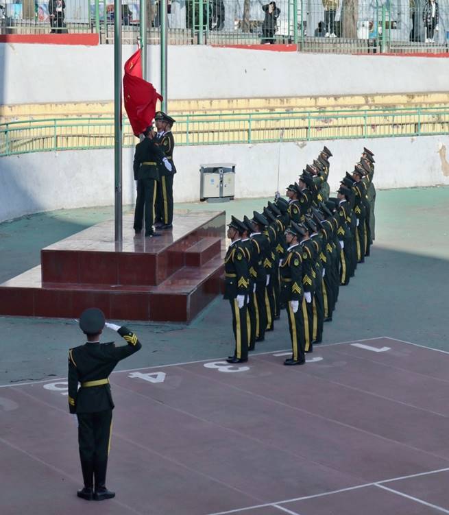 开幕式在主操场举行,在校领导的致词下,进行了庄严的升旗仪式,随着主席台上发出指令,升旗仪式正式开始,国旗护卫队队员踏着整齐划一,铿锵有力的正步,走到旗台前,伴随着庄严的国歌声,鲜艳的五星红旗冉冉升起,全体人员再一次向抗日救亡运动游行的英雄们致敬。自拍外流