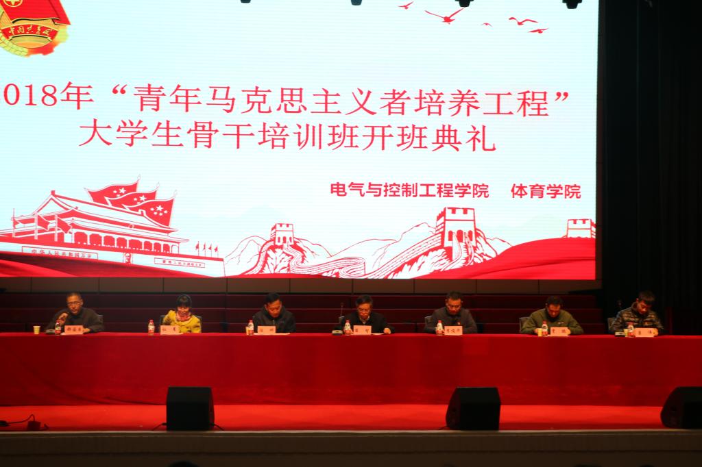 团委与体育学院团委联合举办的2018年“青年马克思主义者培养工程”大学生骨干培训班在科艺苑隆重举行,学院所有团干以及通过前期考核选拔的学员在此汇聚,以励奋新,展望未来。校党委副书记薛智、校团委书记李俊华、院党委书记陈晔、院党委副书记杜苇、体育学院党委副书记贾鹏等出席本次培训开班典礼。