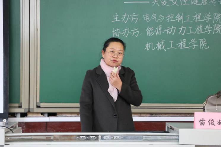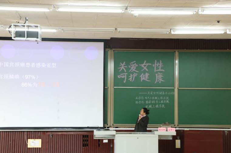 女生部主办、机械工程学院女生部与能源动力工程学院女生部协办的主题为“关爱女性健康”的专项讲座于2019年11月16日上午9:00在七号教学楼07101开展。本次活动邀请到的主讲人是校医院妇产科主任苗俊娥。
