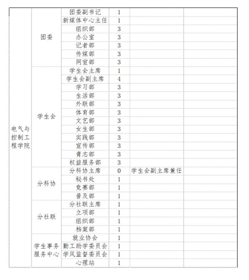 岗位3:院团委、学生会、分科协、分社联及学生事务服务中心各部门部长(若干名)