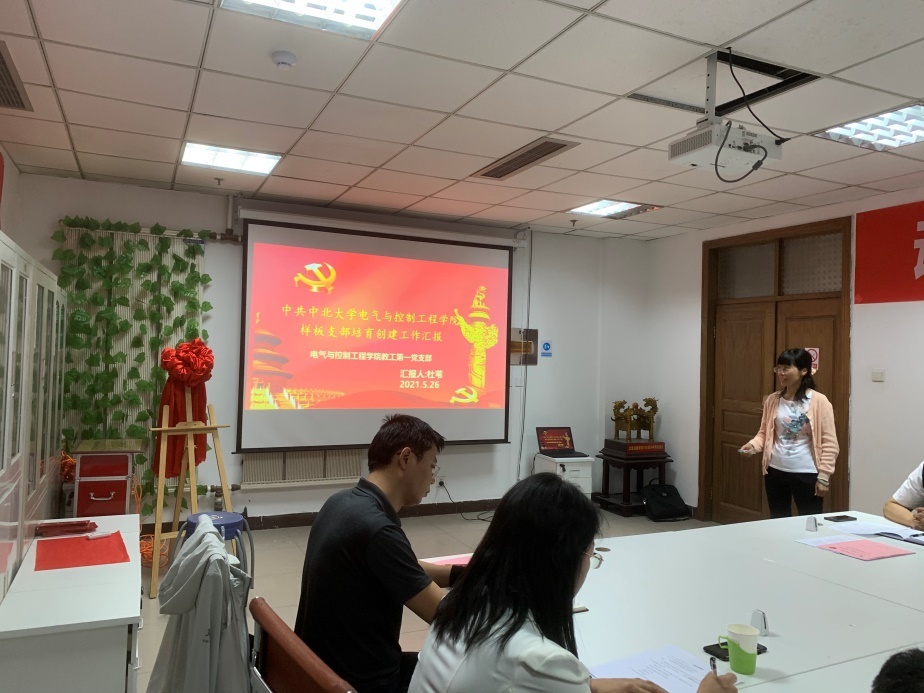 标杆党委培育计划,对标杆党委培育工作从党建引领聚合力、立德树人抓学风、依托项目促发展、志愿服务做表率、阵地建设保实效等五个方面做了汇报。随后,教工第一党支部书记杜苇对样板党支部的培育工作进行了汇报。